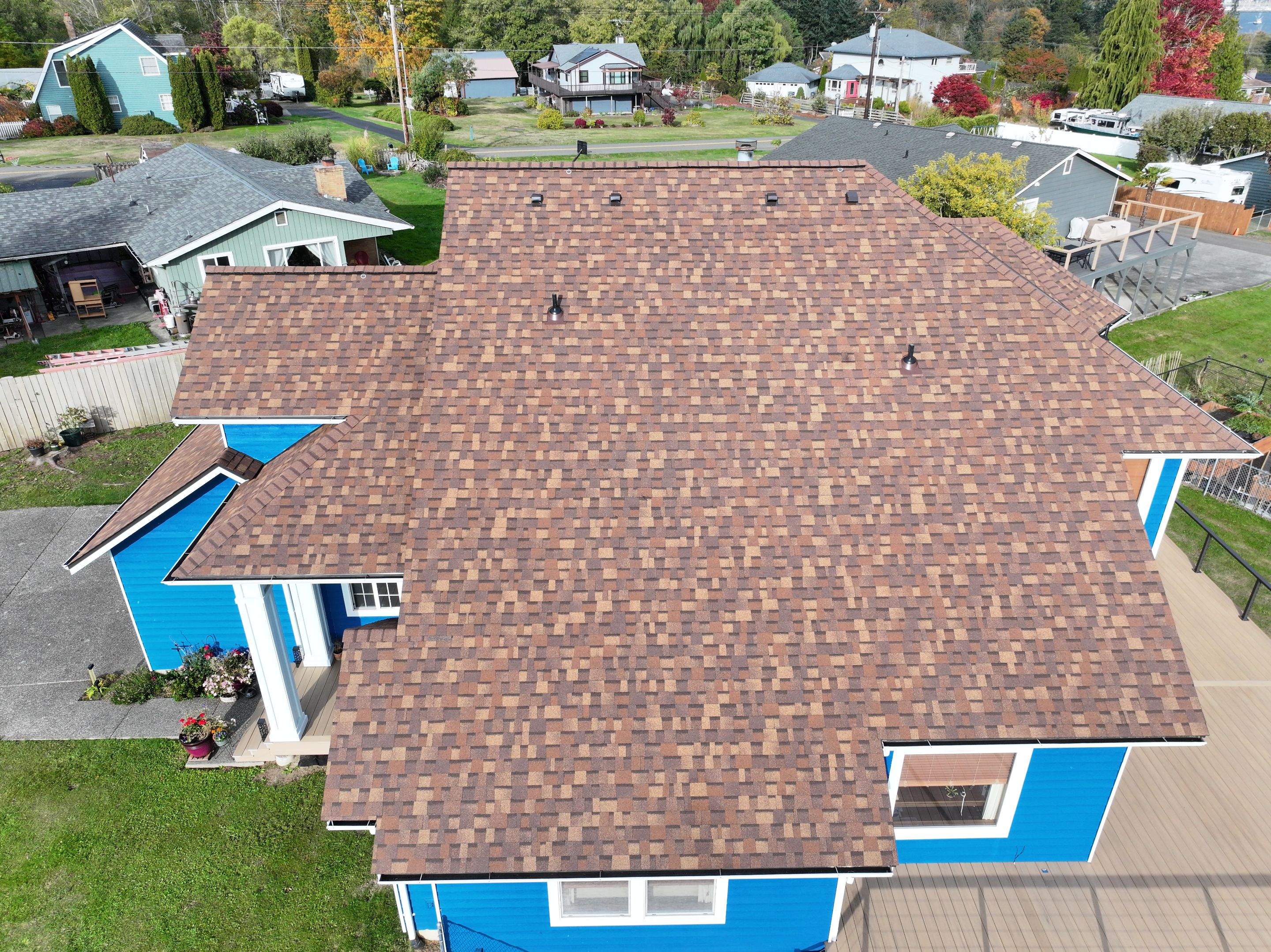 It can be hard to pick out your new roof shingles, especially because we offer so many composition shingle styles and colors! But if you want to visualize what a new roof would look like on your home, we have you covered. Just take a photo of your house and upload it in our roof visualizer, below. Be sure to pick one that gives a good view of your roof! Or, if you can’t take a good photo of your roof, pick a home from the provided photos that looks close to your house. Then, select your new roof tile and see what it looks like on your home! If you’re interested in metal or shake roofing rather than composition or asphalt tiles, make sure you mention that to the roofing estimator so they can bring samples to your appointment.